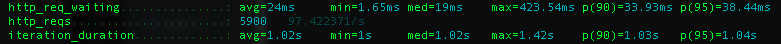 2000, 3000, 4000, 5000이 각 10s동안 요청이 가도록 설정하였고, 성능적으로 생각보다 느린 것을 확인할 수 있습니다.
